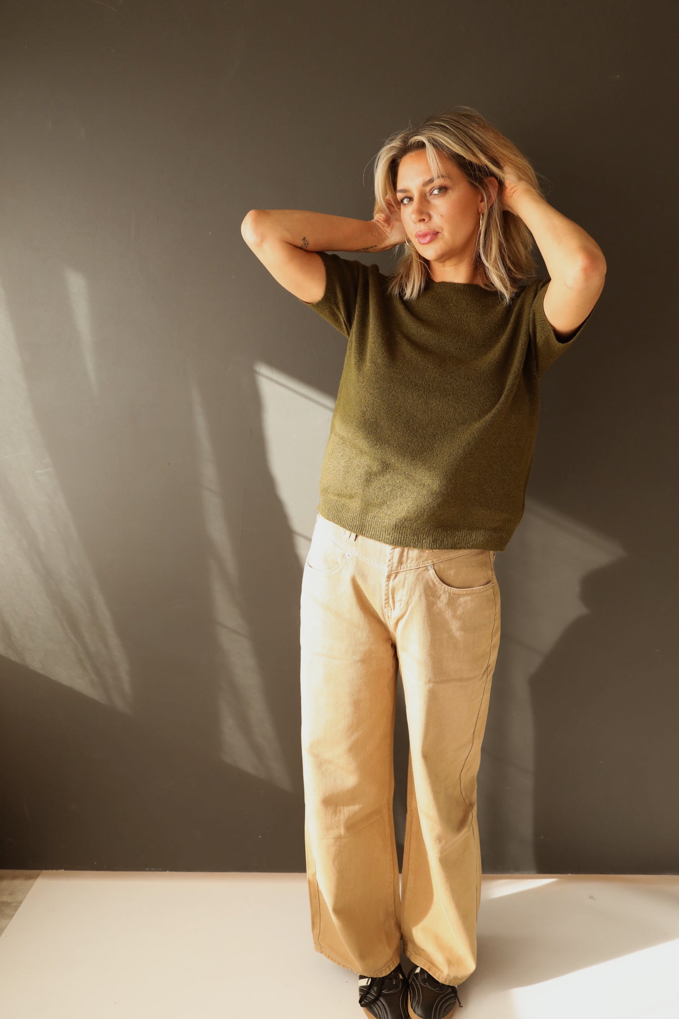 November Short Sleeve Sweater in Olive