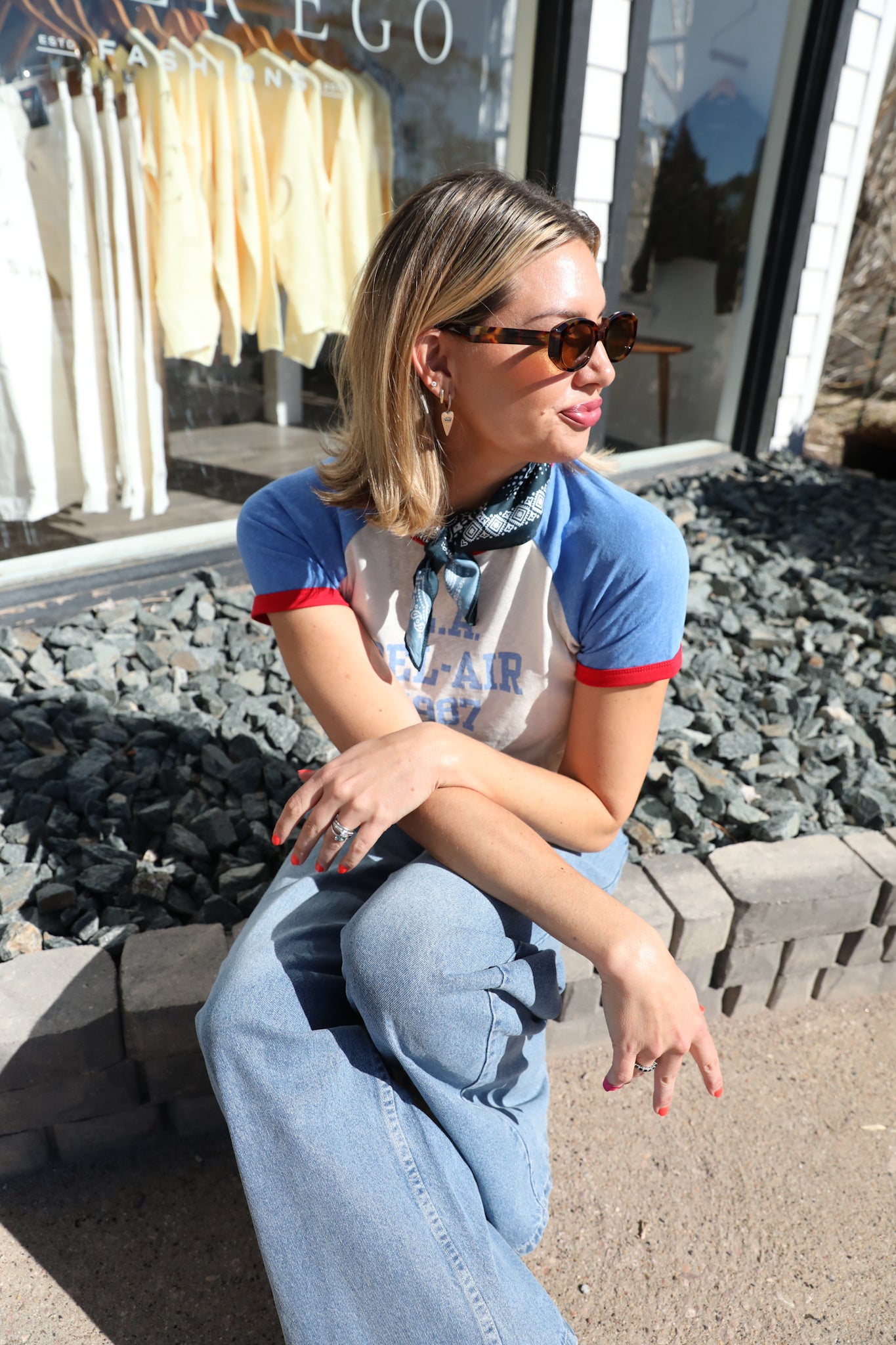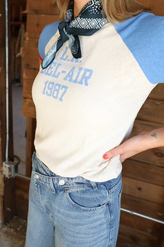 The Rae: Bel Aire Graphic T-Shirt blends classic baseball style with contemporary graphic design, offering a comfortable and stylish fit. Crafted for durability and everyday wear, its raglan sleeves provide ease of movement while the bold graphic print adds a distinctive edge. Perfect for those seeking a sporty yet modern look, this t-shirt pairs effortlessly with casual or athleisure wardrobes.
