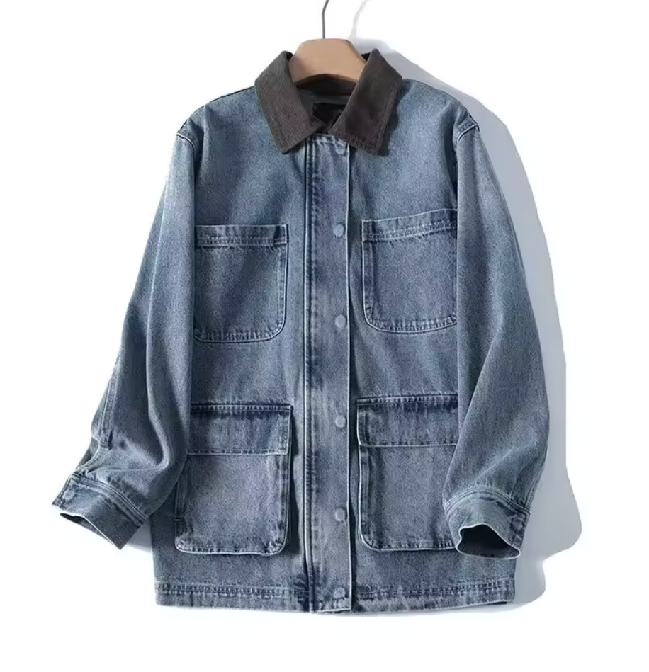 Rae: Denim Coat with Brown Cord Collar - S/M is backordered and will ship as soon as it is back in stock.