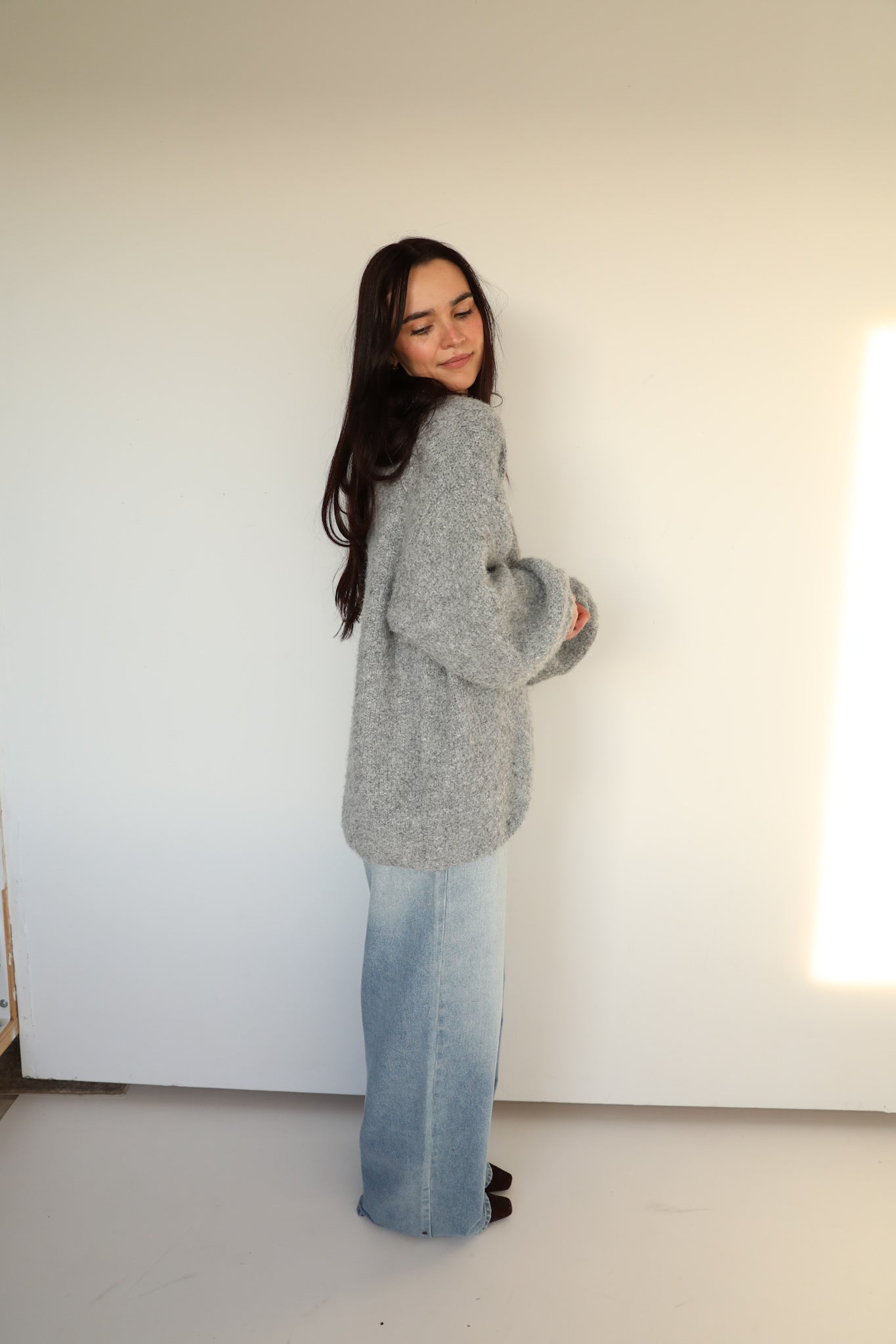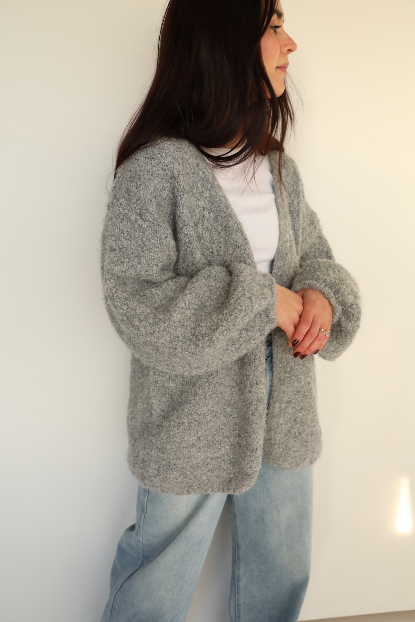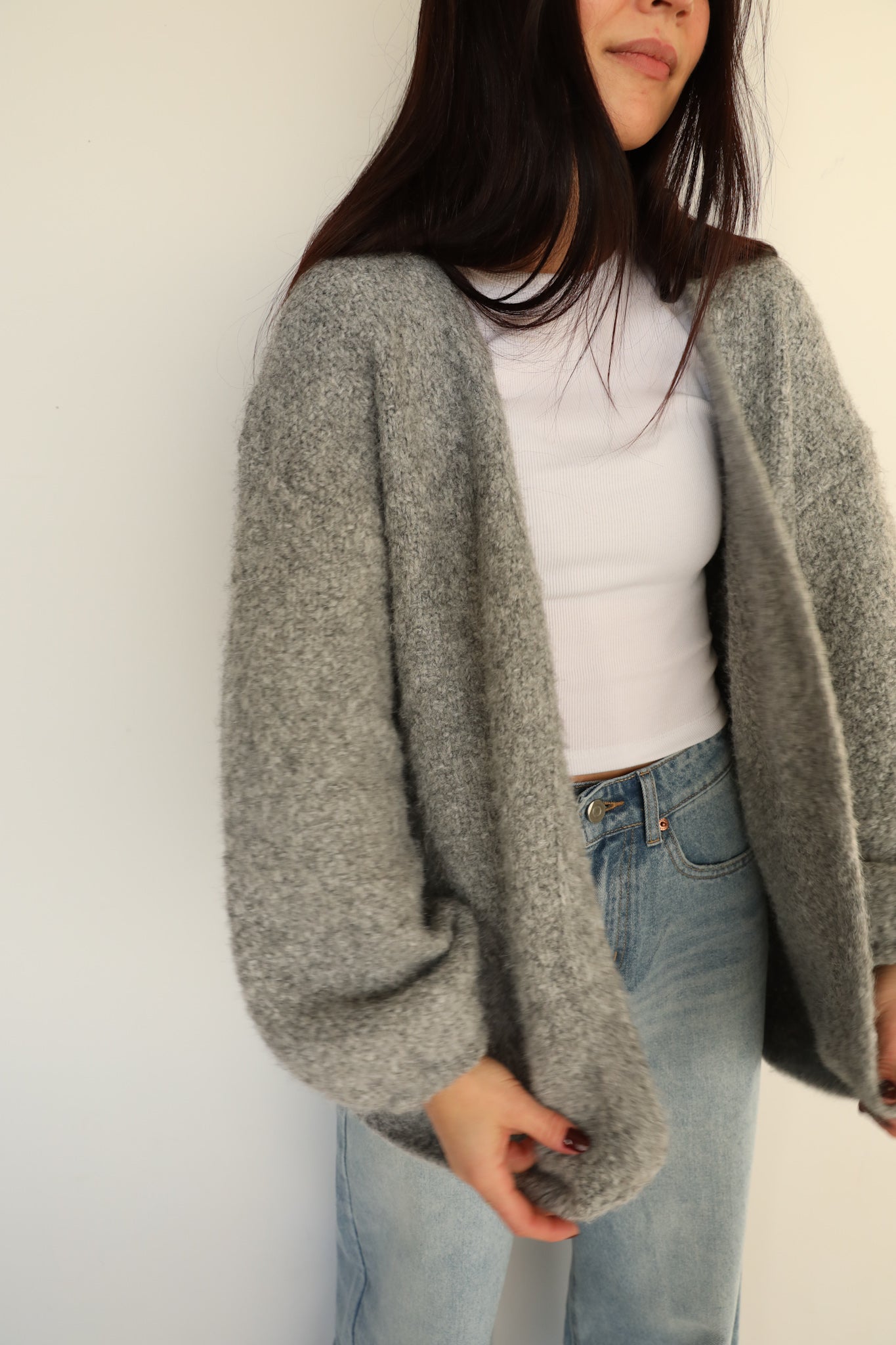 Rae: Fuzzy Cardigan in Grey