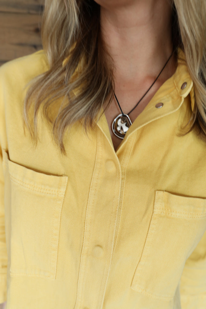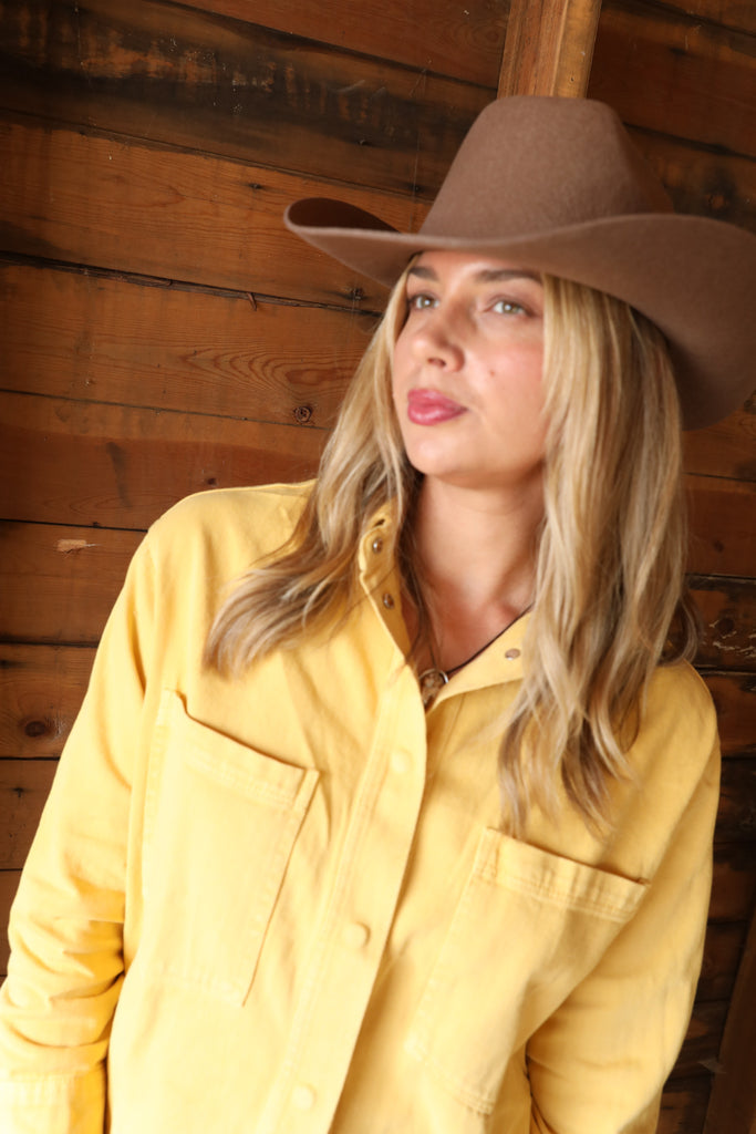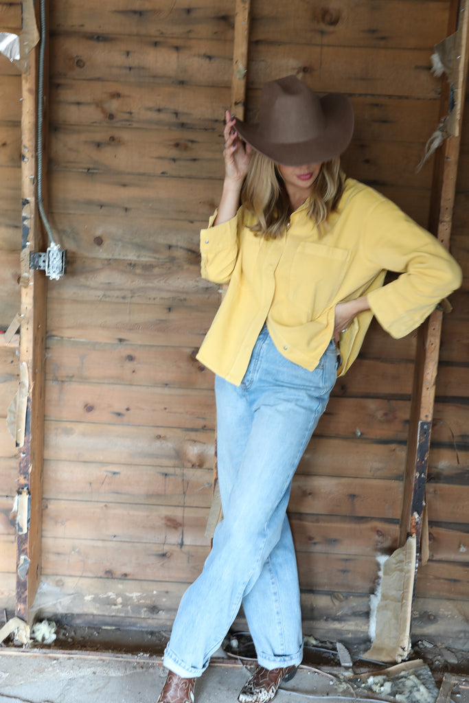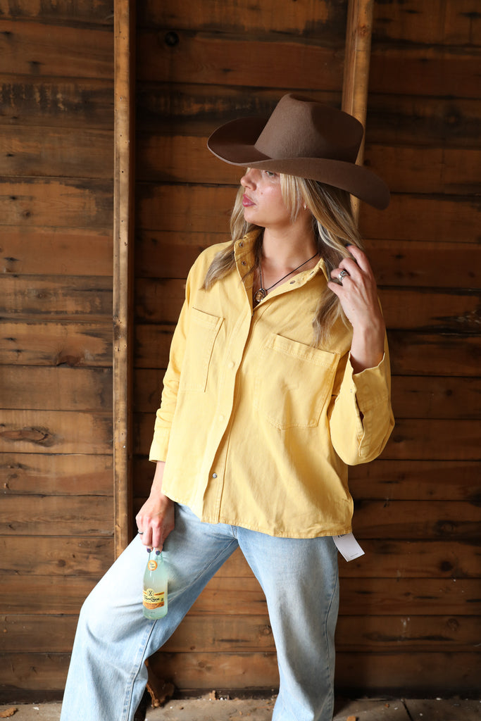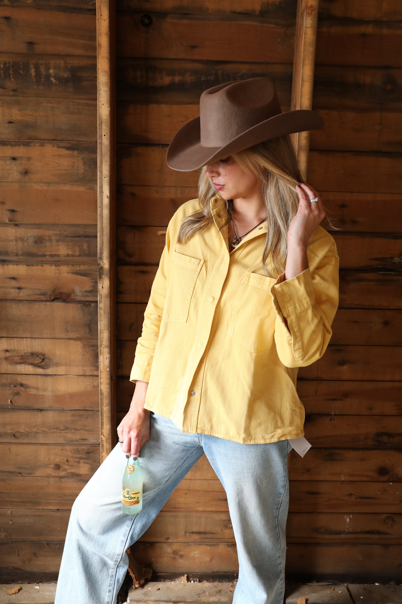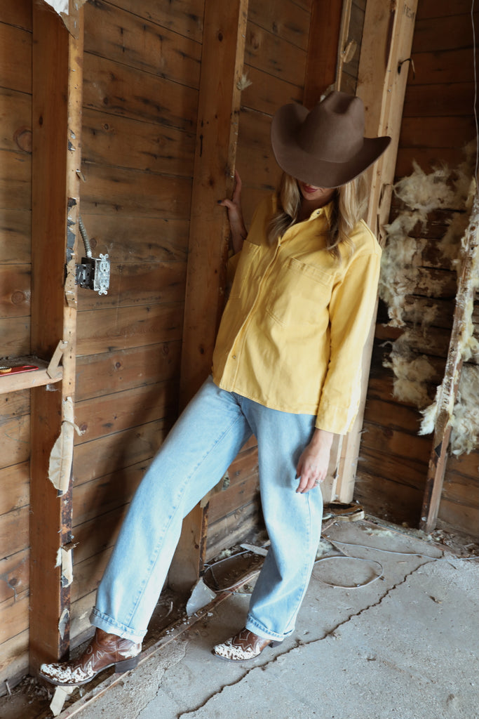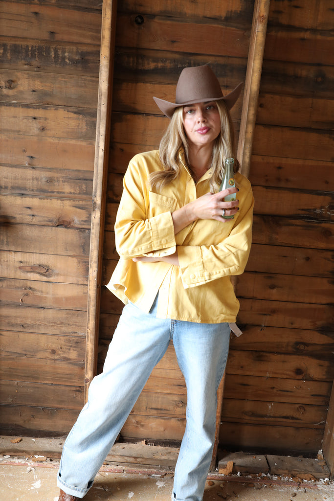 Elevate your fall wardrobe with the Rae: Matilda City Denim Jacket in Mustard. This oversized denim jacket features a vintage wash in a rich yellow hue, perfectly capturing autumn’s warmth. Its relaxed fit allows layering for cooler days, while the distinctive color adds a bold, stylish statement to any outfit. Durable and timeless, this jacket blends classic denim craftsmanship with a contemporary twist ideal for transitional seasons.