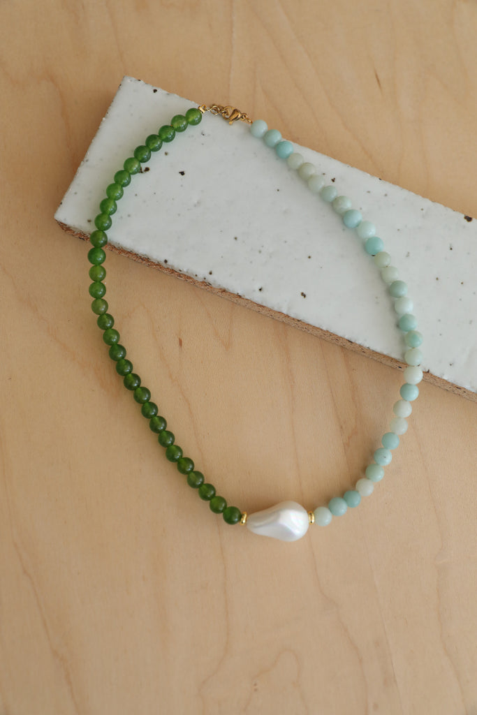 Rae: Hayes Hand Beaded Necklace in Kelly Green
