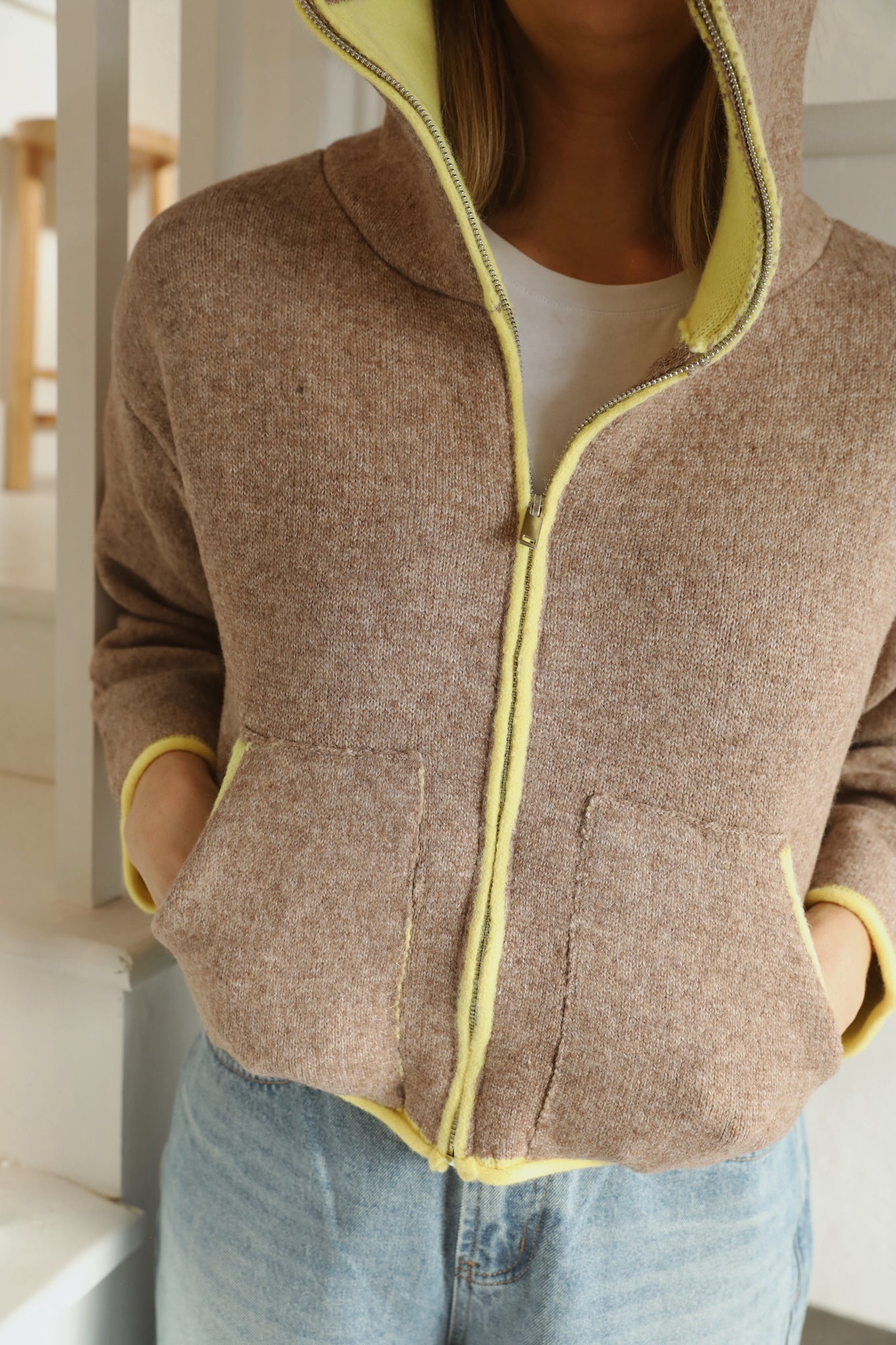 Rae: Two Tone Yellow Mock Neck Zip Up