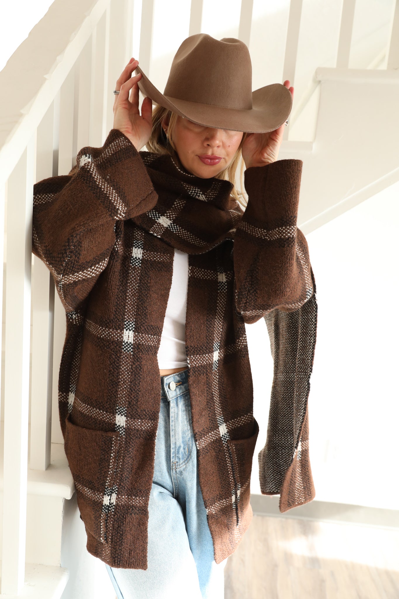 The Rae Yellowstone Cardigan seamlessly merges two essentials into one sophisticated piece. This innovative design features an integrated shawl collar that eliminates the need for separate layering, offering effortless elegance and versatility. The plaid pattern adds timeless visual interest while the built-in shawl drapes beautifully, providing warmth and dimension. Perfect for transitional seasons or layering year-round, this cardigan delivers both style and practicality in a single, thoughtfully designed garment.